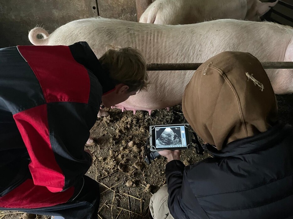 Žáci 4.AG se v rámci praxe učili diagnostikovat březost prasnic pomocí ultrazvuku.
